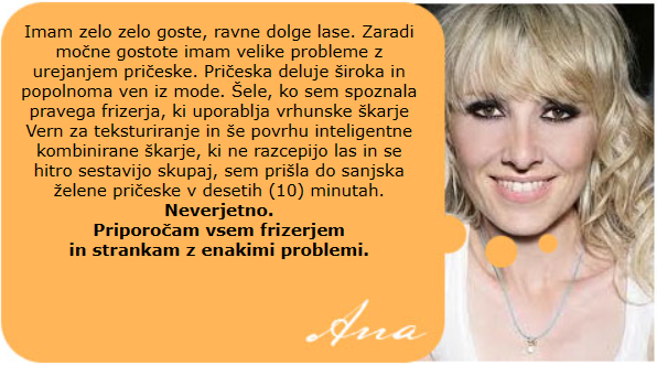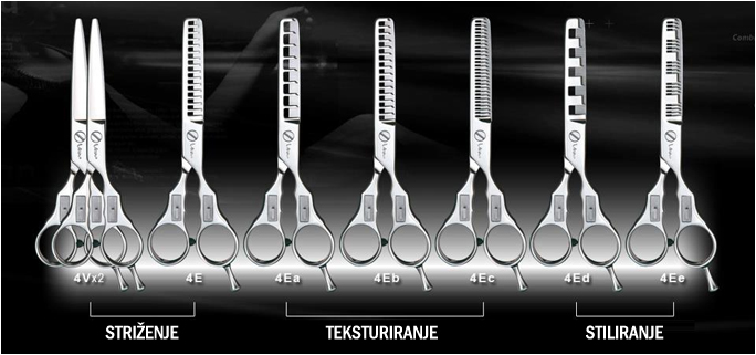 ter poševne reze za ustvarjanje mehkih in razdrobljenih učinkov. Ustvarjajo mladosten in unikaten videz pričeske.Škarje lahko uporabljamo samostojno ali kombinirano.